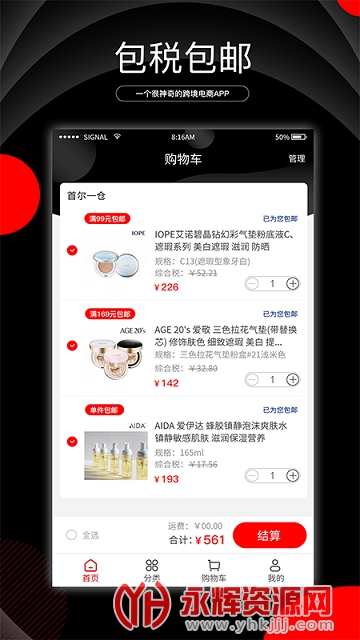 购物车,想买的商品随手添加购物车,多种商品一键购买;
