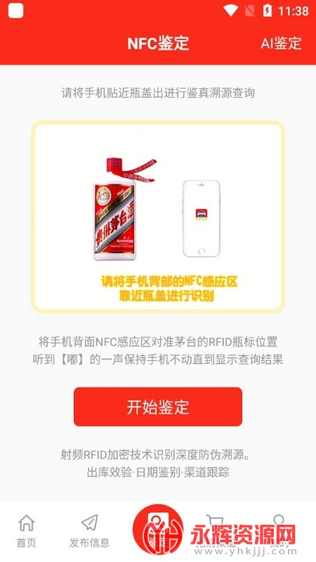 带NFC功能的手机验证茅台镇国酒瓶帽处的芯片能够确认茅台镇国酒的真伪。