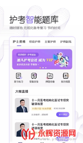 护考公社app是为广大朋友们提供的护理师考试学习软件,软件中有着精选的学习题库提供给大家,你可以通过软件进行复习,有需要的朋友们快来永辉资源网下载吧!