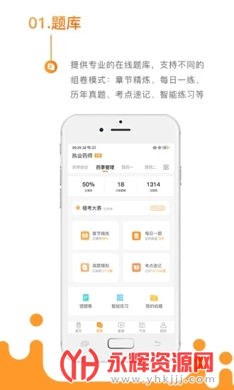 题库支持不同的组卷模式:章节精炼、每日一练、历年真题、考点速记、智能练习,药考生刷题利器!