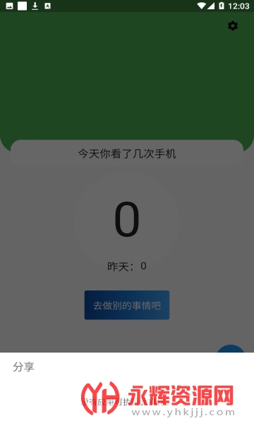 新增分享文字功能,可以将今天使用手机的次数以文字的方式分享给其他应用