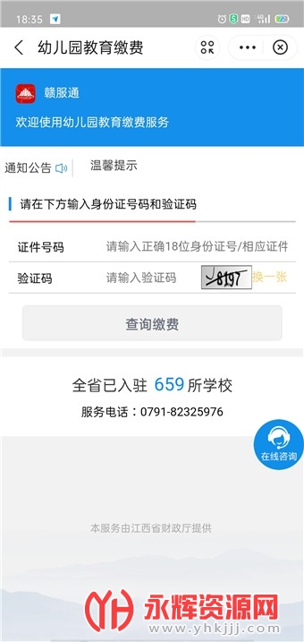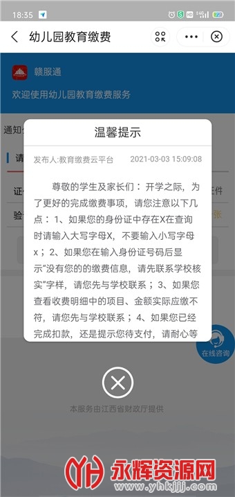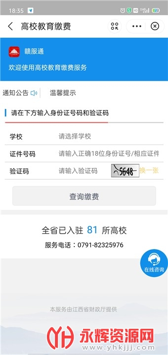 2.如果您在输入身份证号码后显示“没有您的的缴费信息,请先联系学校核实”字样,请您先与学校联系;