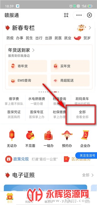 05、如果首页没有看到缴学费则下滑点击【全部】