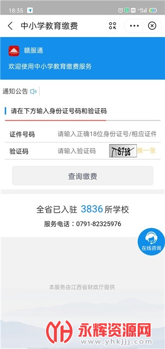 04、输入学生身份证号,填写验证码,查看学费,缴费即可完成