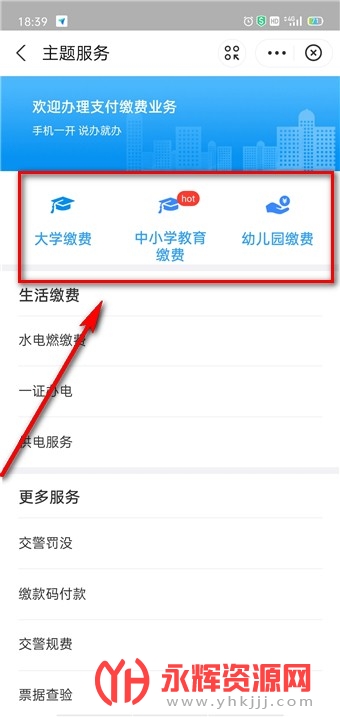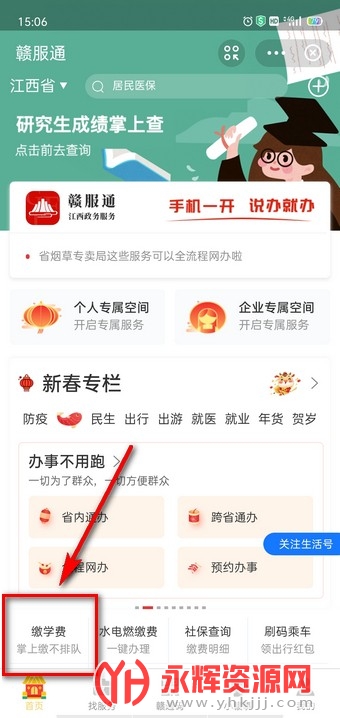 02、在首页我们就可以看到下方有一个缴学费,点击进入