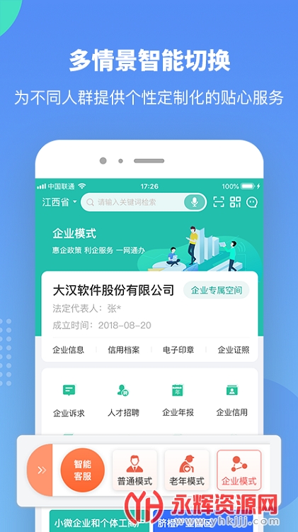 江西移动政务服务平台“赣服通”由江西省政务服务管理办公室主办、江西省信息中心承办。平台以大数据、云计算、区块链技术为支撑,以为民服务解难题为宗旨,以安全诚信、可追溯、简化便捷、公平公正公开为目标,做到政务信息“掌上查”、高频事项“掌上办”、日常费用“掌上缴”、大厅办事“掌上约”、智能客服“掌上答”,让企业群众到政府办事像“网购”一样方便,“手机一开、说办就办”!