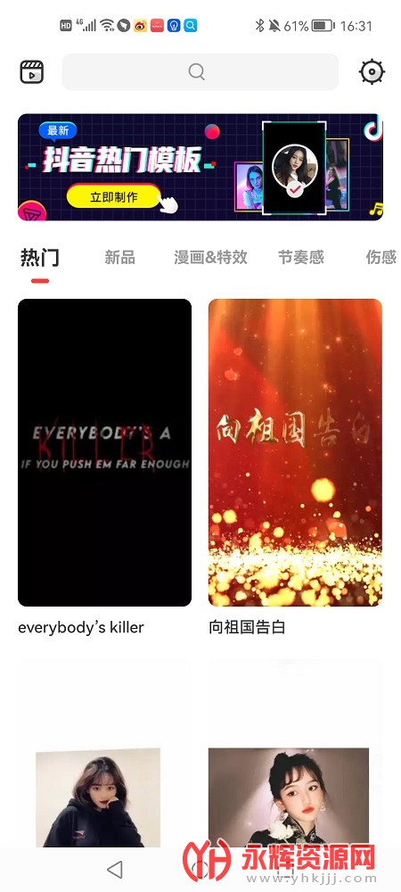 节奏酱破解版免登录是十分好用的手机视频制作软件,软件中有着超多不同风格的模板,还有着超多卡点视频等着你一键制作。有需要的朋友们欢迎来永辉资源网下载使用哦!