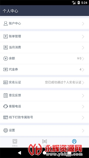 展示实名认证相关信息、有问题随时提交客服、账户设置等功能。