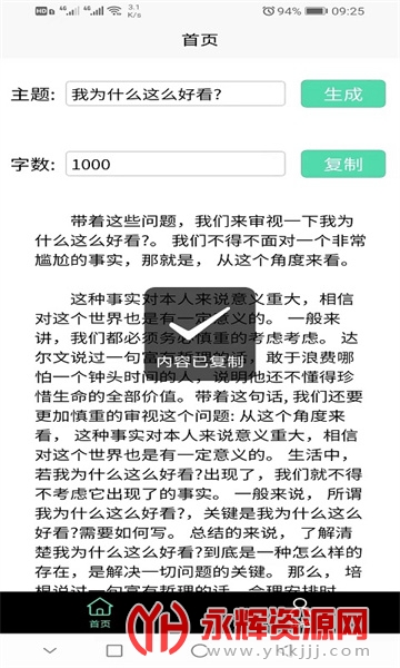 恒七七app是一款非常好用的文章生成软件,使用这款软件你只需要输入文章的标题就和字数就可以一键为你生成优美的文章。有需要的朋友们欢迎来永辉资源网下载哦!