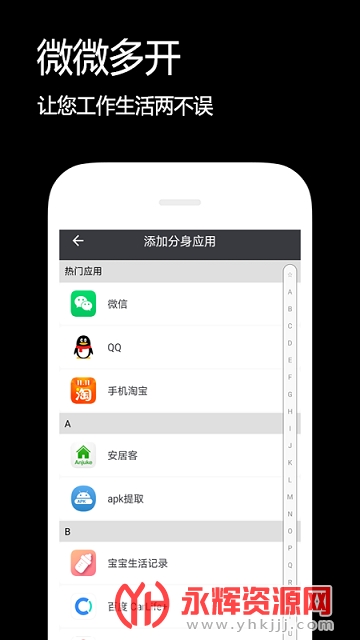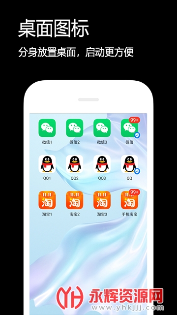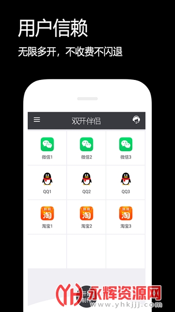 支持多种不同类型的应用多开,比如微信、QQ以及淘宝等多种应用