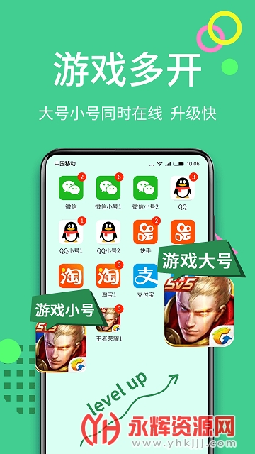使用不同的账号同时登陆部落冲突、战争游戏等游戏,和自己结盟或战斗获取更多资源,或者挂账号获取在线时间等,更快升级更多乐趣