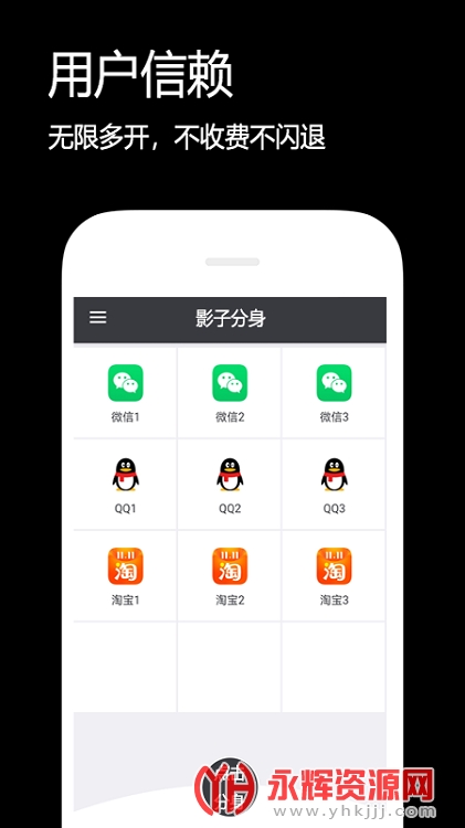 众多微信用户信赖的应用分身APP,免费支持让所有微信用户都能解决多微信分身需求,经千万用户实测,分身大师已覆盖:社交软件双开、分身;电商类软件双开、分身;生活类软件双开、分身;娱乐类软件双开、分身;游戏类软件双开、分身等几乎所有应用双开分身!
