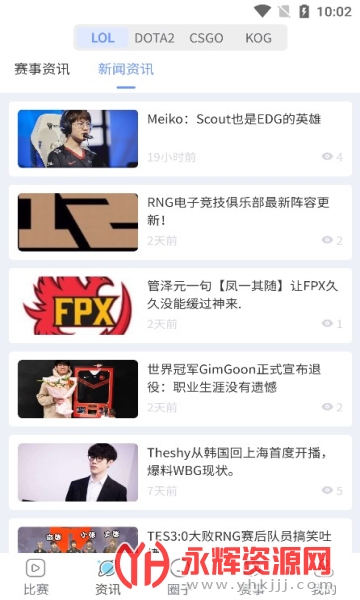 玩玩电竞app是为喜欢玩游戏的宝贝们提供的应用软件,在这里你可以了解不同游戏的资讯,还可以查看各大电竞赛事的实时直播。有喜欢的朋友们快来永辉资源网下载吧!
