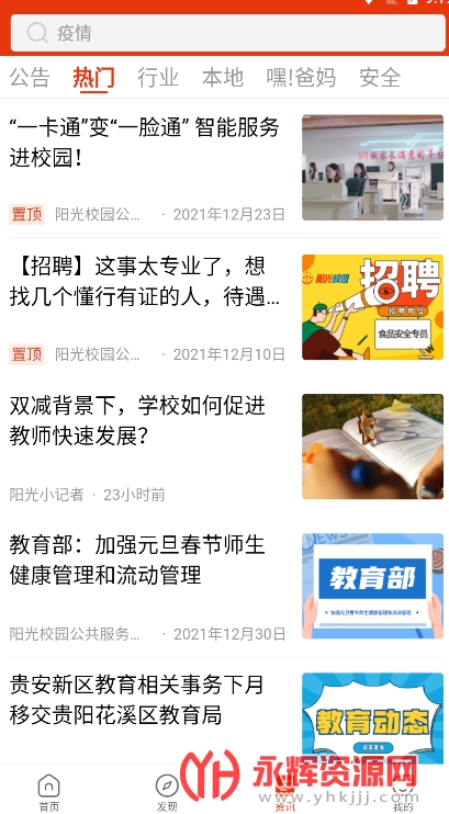 专区首页设置有公告栏,教育主管部门通过此处发布相关通知。