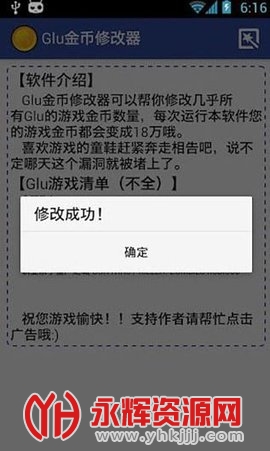 可以帮你修改几乎所有glu的游戏金币数量,每次运行本软件您的游戏金币都会变成18万哦。