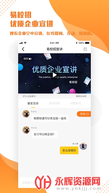 打破时间限制,学生随时随地听宣讲企业独立线上宣讲时间,直击目标高校HR精准与求职学生线上互动