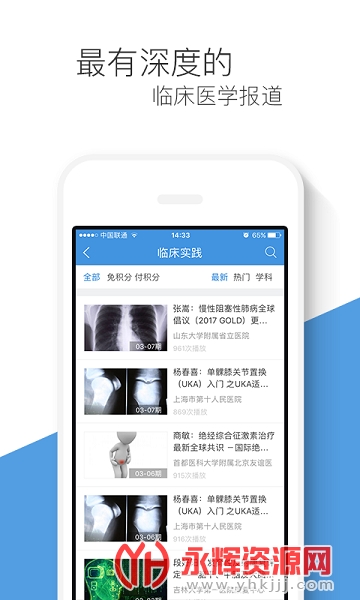 有最有深度的临床医学报告,有免积分观看的也有需要付积分观看的。也有最新、最热的分类,方便用户找到最想观看的视频。