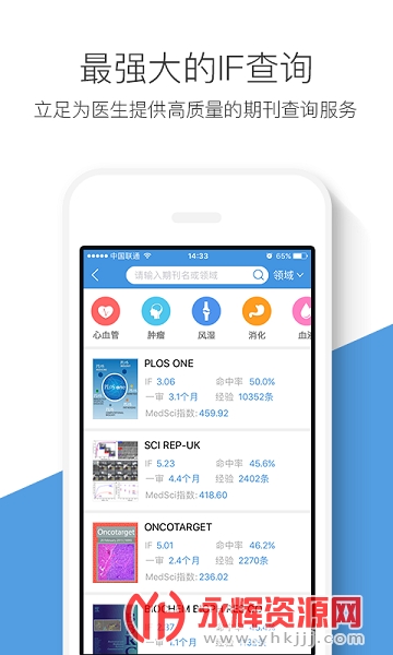 也有最强大的IF查询,立足为医生提供高质量的期刊查询服务。有心血管科、肿瘤科、风湿科、消化科等科室的期刊查询。