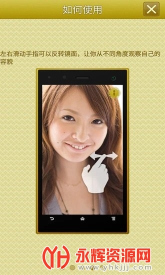 2、左右滑动手指可以反转镜面,让你从不同角度观察自己的容貌