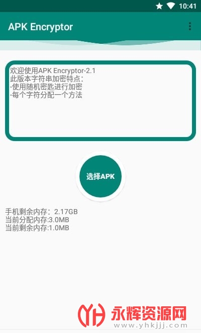 为用户进行APK加密的软件,也就是对APK的文件内容进行加固,通过加固能够减少对于APK文件内容的破解,降低破解当中所需要耗费的时间和精力,不能够绝对保护你APK文件的安全,但是一些简单的破解手段都能够进行预防,需要的话可以尝试这款APK Encryptor!