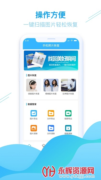 支持手机相册误删照片恢复、微信朋友圈等历史照片恢复,无需电脑配合,使用智能修复功能,就可以自动修复照片使其清晰度提高,还原其本来面貌。