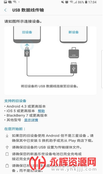o从ios设备有线传输至galaxy设备