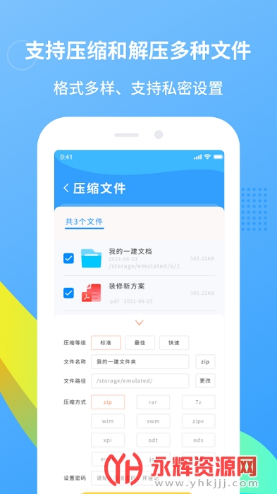 解压缩软件支持文件解压与压缩,包括加密文件解压与压缩。支持zip解压;支持rar支持;此外还支持7Z, TAR, ZIPX, GZIP, BZIP 等压缩文件格式。本工具是一款强大的文件管理工具。