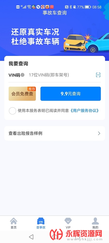 车架号查询车辆信息app是为广大朋友们提供的车辆信息查询工具,使用软件输入车架识别号就可以为您查询到汽车的生产日期、汽车配置、生产地等等,有需要的朋友们欢迎来永辉资源网下载哦!