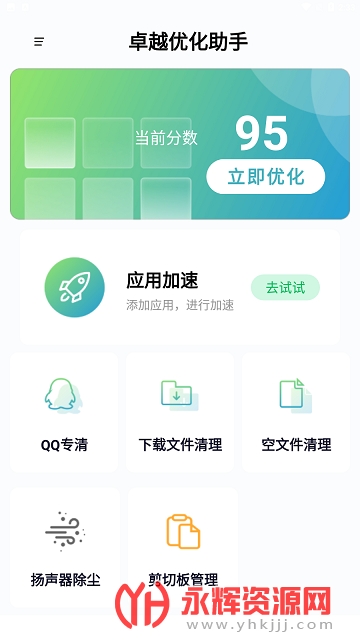 卓越优化助手是一款非常好用的手机内存清理优化工具软件,软件中为用户带来了强大的手机内存清理辅助功能,还有各种方面的系统优化辅助,还可以提升手机运行速度,避免各种原因的卡顿,特别的方便实用,有兴趣的朋友就快来永辉下载体验吧!