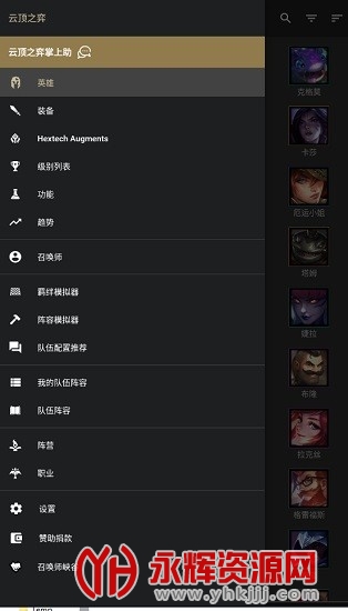 lolchess中文版是一款非常好用的手机游戏辅助工具软件,软件专门为喜欢玩云顶之弈手游的玩家打造了一个包含了诸多游戏资料攻略的辅助平台,在这里可以让玩家轻松了解到最新的游戏版本变更,装备攻略,也可以尝试各种阵容羁绊,有兴趣的朋友就快来永辉下载体验吧!