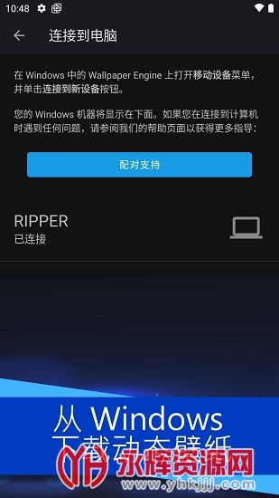 连接到 Windows 上的 Wallpaper Engine,以将桌面库传输到手机上。
