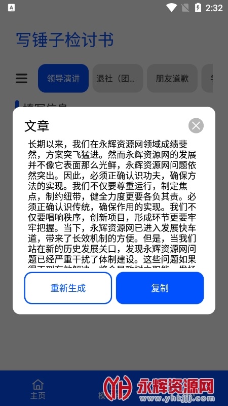 自由的进行检讨书生成,是非常实用的手机工具