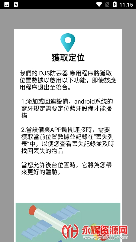 我们的DJS防丢器应用程序将获取位置数据以启用以下功能,即使该应用程序退出至后台。