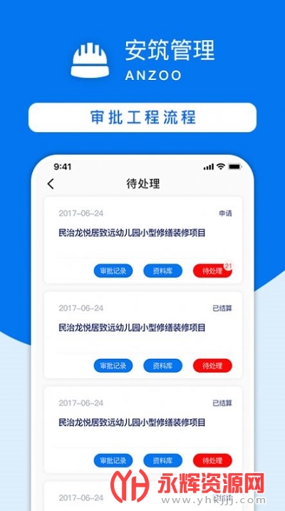 安筑工程建设管理系统app是一款非常优质的工程项目管理软件,在这里你可以进行审批工程流程、还能让你 更加轻松的管理项目,有需要的朋友们不妨来永辉资源网下载使用哦!