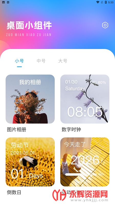桌面主题小组件app是能让你很好的美化手机的小工具,使用软件可以让你添加照片相册、时钟、倒数日、运动步数等等小组件,小组件的样式以及各式大小都可以自己进行diy,让你的手机桌面更加漂亮。对这款软件感兴趣的宝贝们欢迎来永辉资源网下载哦!