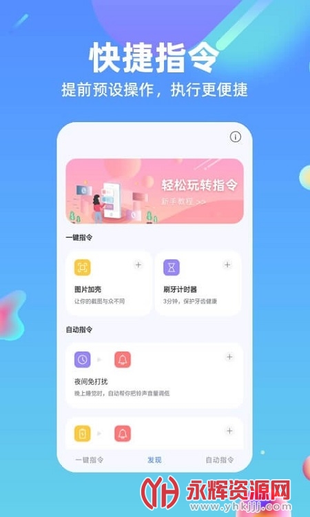 鸿物快捷指令免费版是许多朋友们提供的安卓辅助工具,实用这款软件设置指令可以为您打开多种软件,以及设置时间提醒等等。有喜欢的朋友们欢迎来永辉资源网下载哦!
