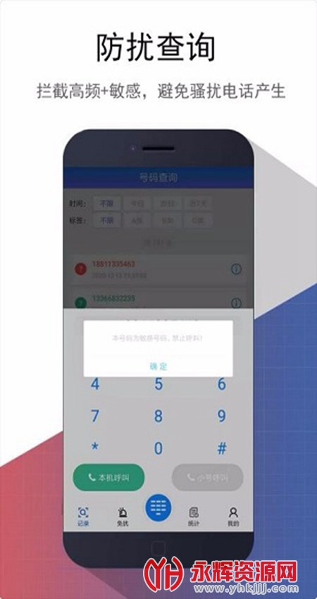 防扰查询:通过数据库比对,将高频、敏感号码进行限制呼出,避免对此类人群产生骚扰。