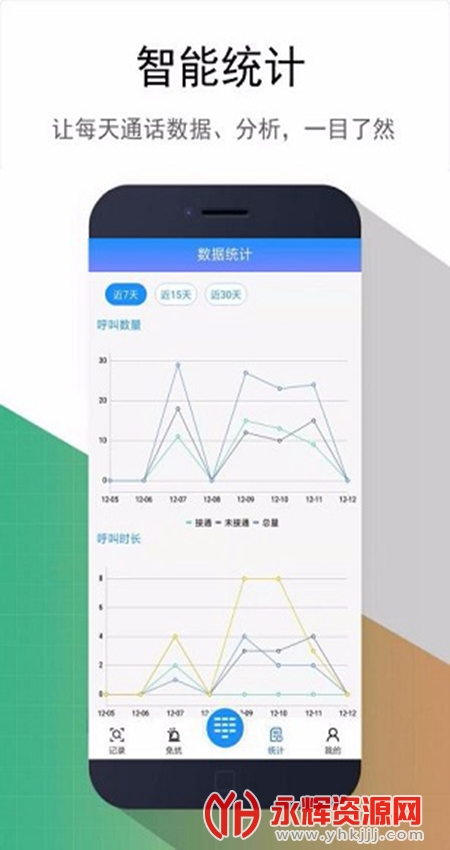 智能统计:数据化每天外呼次数、平均接听时长,深度分析数据情况,让工作质量分析一目了然。