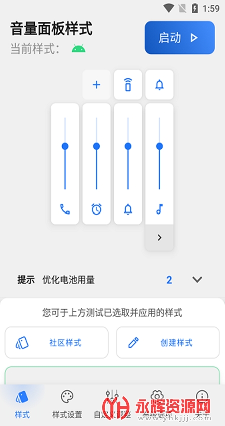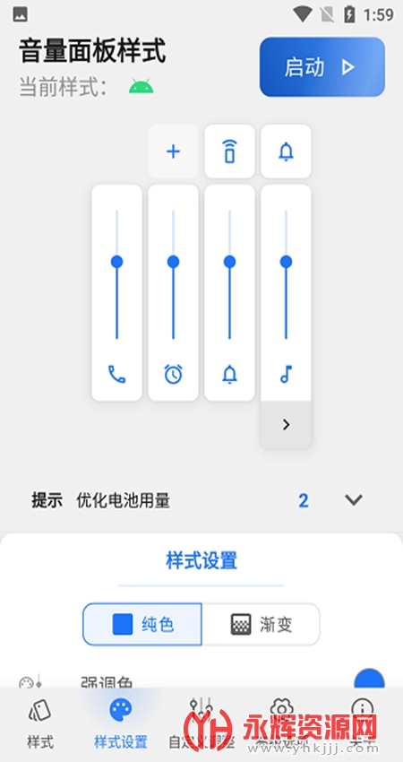 这里为大家带来了一款可以调节安卓手机桌面音量的美化工具软件volume styles汉化版,这是一款适用于众多手机型号的美化工具app,用户可以使用其来自定义音量显示的图标,操作等等都是非常的简单的,您每次对音量进行调节都将看到相当好看的风格内容,有兴趣的朋友快来下载这款工具软件吧!