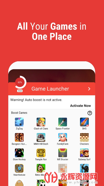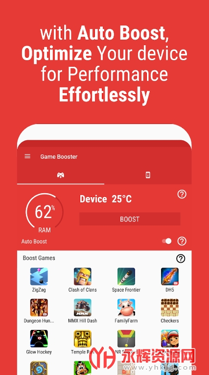 唯一可以为您提供最高速度的GameBooster,只需轻轻一按,即可提升设备的性能,为游戏和最高性能自动优化CPU,RAM和许多其他东西!