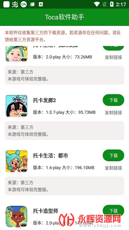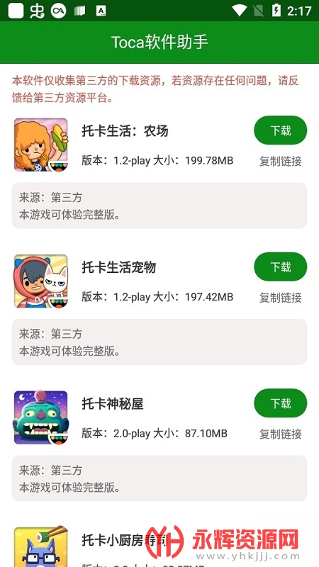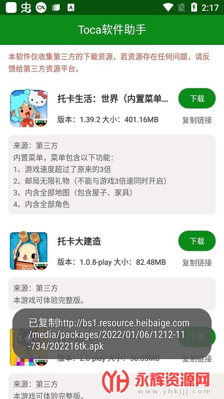 玩家可以直接通过Toca软件助手下载托卡宝卡旗下的各种游戏,每一个都是破解版本的,直接通过软件助手进行下载或者复制链接分享给你的好友。