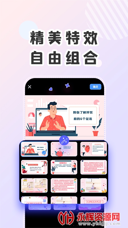 由专业设计师打造的个性模板库,涵盖各个生活与工作场景,并持续更新特效样式,最大程度美化您的照片视频。支持图片格式包括:jpg、jpeg、png;视频格式包括:mov、mp4、avi,在保证视频质量的前提下尽可能压缩照片或视频,以减少用户的等待时间。