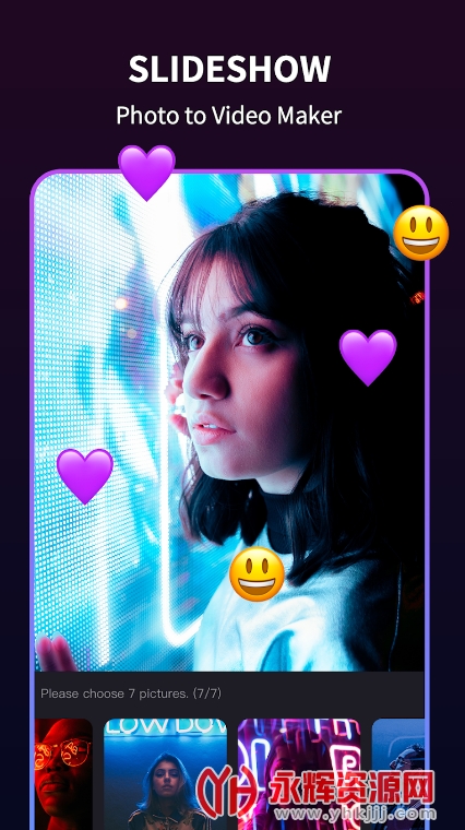 具有时尚模板、流行音乐、令人惊叹的过渡、动画、霓虹灯、3D、卡通效果和视频效果;