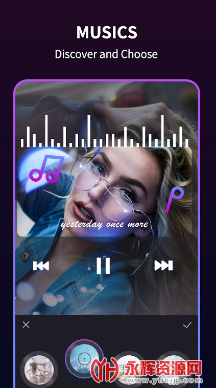 帮助您轻松地将音乐添加到视频中,音乐视频制作器和效果器 - 提供极高质量的编辑过程;