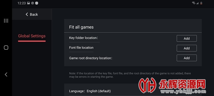 ②将出现一个弹出窗口,提示您找到游戏,KEY文件和字体文件所在的目录,然后单击“设置”。