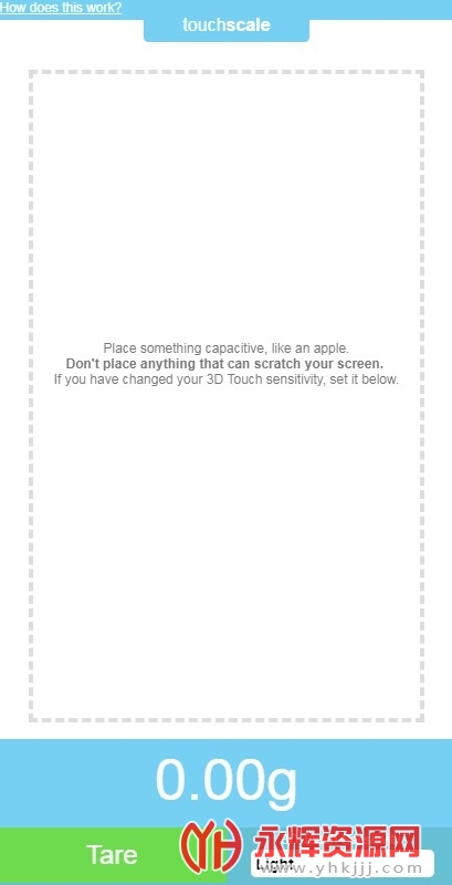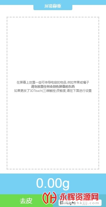 手机屏幕电子秤touchscale非常火的屏幕称重让很多人发现了苹果手机的另一玩法,在这里为大家提供安卓版,安装起来非常方便,让你的手机可以模拟电子秤进行称重,只需要你的手机具有3D touch功能就可以操作了哦!