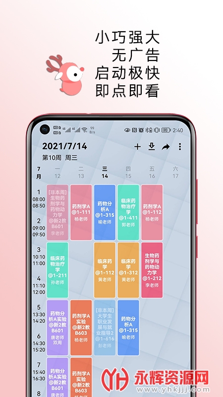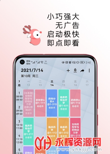 1、wakeup课程表app简洁轻巧,没有广告不臃肿耗电少无后台,启动速度极快,生成课表后即点即看;