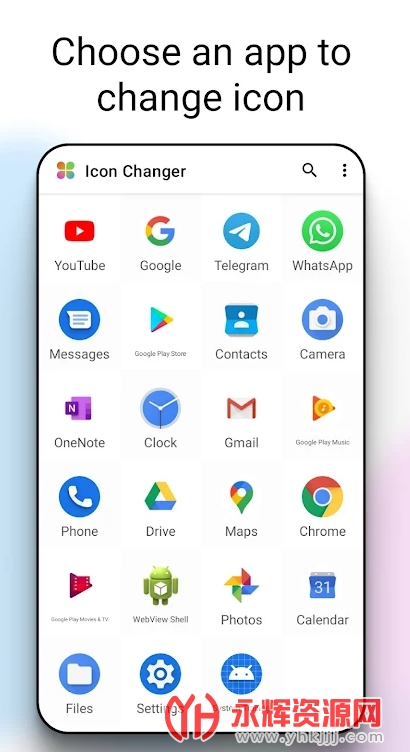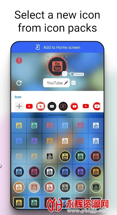 从内置图标包、图库、其他应用程序图标或第三方个性化图标包中选择新图像。