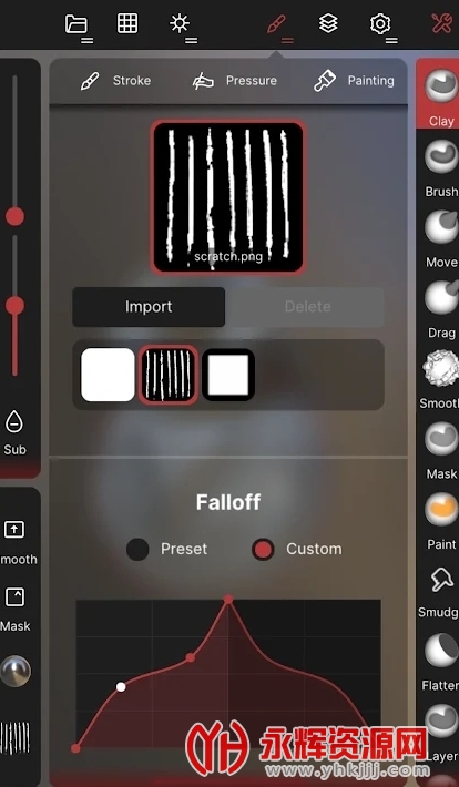 衰减,alpha,铅笔压力和其他笔触参数可以自定义。