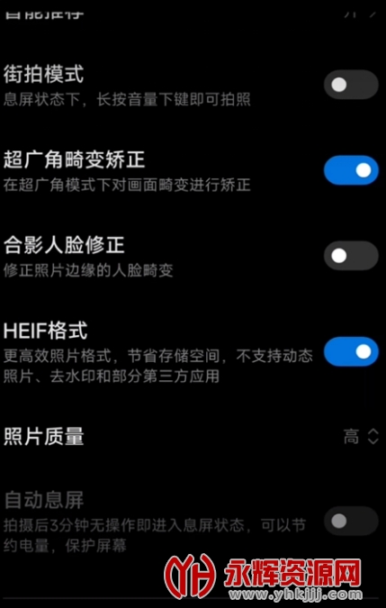自动息屏拍摄后3分钟无操作即进入息屏状态,可以节约电量,保护屏幕。